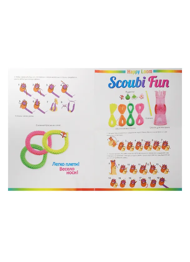 Happy Loom Scoubi Fun Набор для плетения браслетов (02208) (4 браслета) (4 веревочки+станок+крючок+4 подвески) (6+) (коробка)