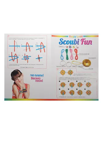 Happy Loom Scoubi Fun Набор для плетения браслетов (02209) (4 браслета) (4 веревочки+2 колечка-замочка+2 застежки+станок-пуговка+4 подвески) (6+) (коробка)