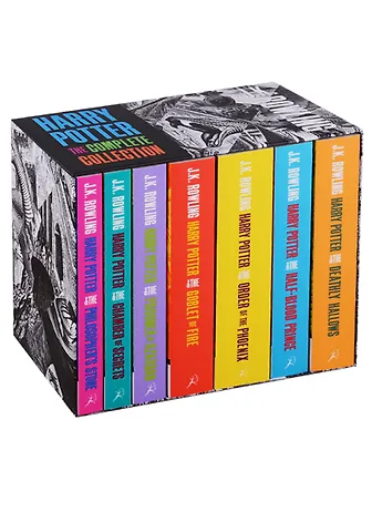 Цикл книг о мальчике, который выжил, в наше время уже не нуждается в представлении. Но вместе с этим, всегда есть возможность по новому взглянуть на уже казалось бы знакомые произведения - ознакомиться с ними на языке оригинала. В этом боксе представлено оригинальное семикнижье, оформленное со взрослыми, более серьезными обложками. Хотел бы также подчеркнуть, что издание британское, и у первой книги сохранено оригинальное название - Philosopher’s stone вместо американского Sorcerer\'s stone.
