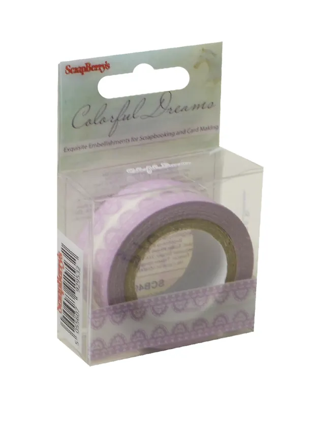 ХОББИ И ТЫ Бумажная клейкая лента с принтом Сиреневое кружево 15мм*8м SCB490005