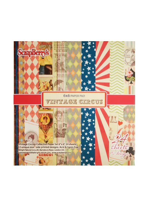 ХОББИ И ТЫ Набор бумаги д/скрапбукинга 15*15см 170гр/м Старый цирк, 24 листа