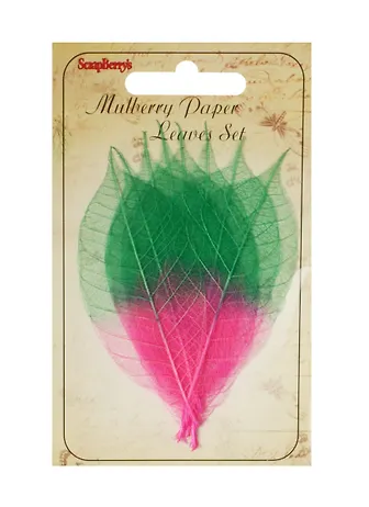 ХОББИ И ТЫ ScrapBerrys Скелетированные листочки из бананового дерева, набор 8 шт, малиново-зелены