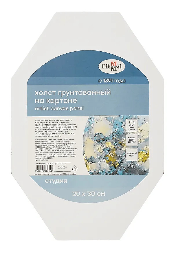 Я периодически стараюсь приобретать холсты нестандартной формы. Потому что мне очень нравится применять их для интересных композиций в живописи. Такого у меня ещё ни разу не было. В работе он мне понравился. В целом качество хорошее - стандартное. Тем более, что я обычно отдаю предпочтение холстам с мелким зерном. Лично для меня они кажутся гораздо удобнее при изображении мелких деталей.