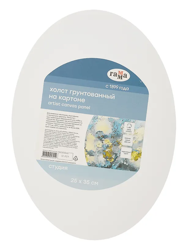Холст на картоне 25*35 "Студия", овальный, 100% хлопок, 280г/м2, мелкое зерно