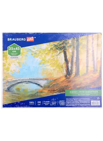 Холст на картоне 35*45см грунтованный, 100% хлопок, мелкое зерно, BRAUBERG ART CLASSIC