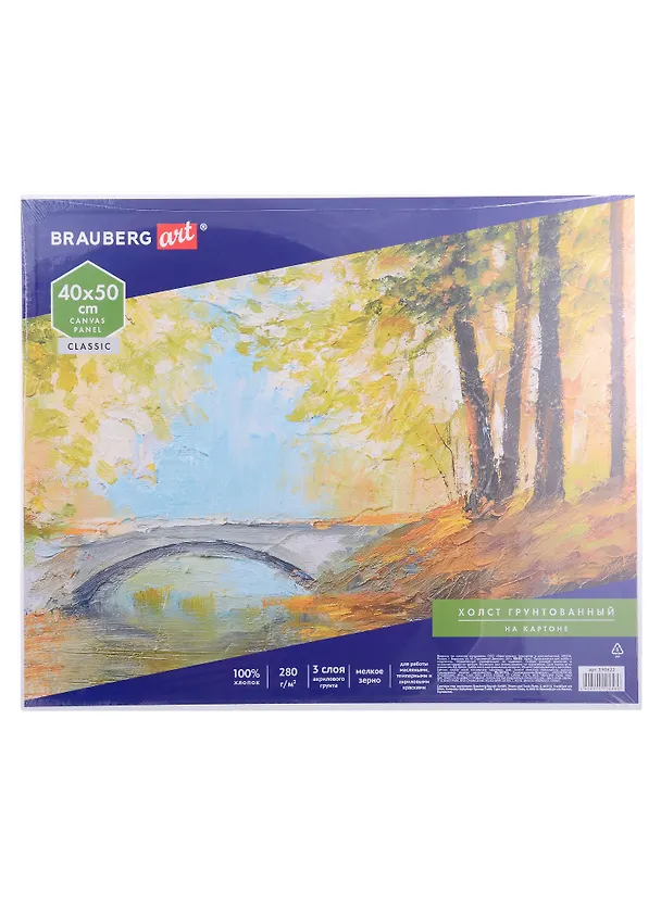 Холст на картоне 40*50см грунтованный, 100% хлопок, мелкое зерно, BRAUBERG ART CLASSIC