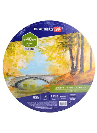 Холст на картоне 40см грунтованный, круглый, 100% хлопок, мелкое зерно, BRAUBERG ART CLASSIC