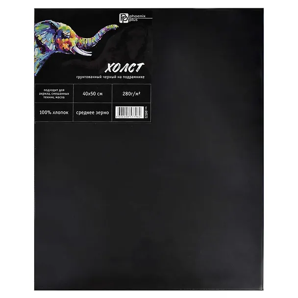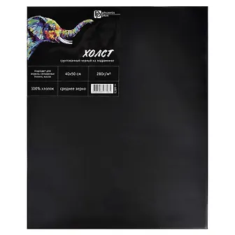 Холст художественный чёрный, на подрамнике из сосны, Феникс+, грунтованный, для акрила, масла, смешанных техник, 40х50 см, хлопок 100%, зерно: среднее