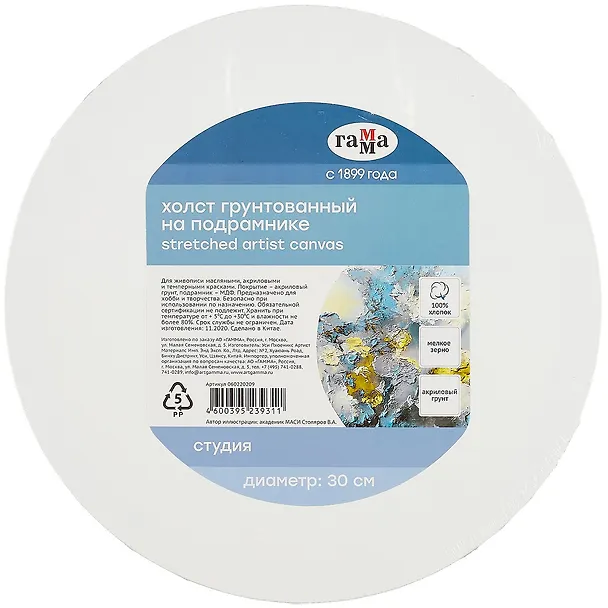 Давно искала круглый холст и наконец нашла, почему-то не везде есть. Подрамник очень мощный, немного тяжеловатый, но зато можно не бояться, что деформируется. Ткань натянута отлично, не провисает. Пришел отлично упакованным в каптон и плёнку, отдельное спасибо вашим сотрудникам! Однозначно буду брать холст круглой формы ещё и не раз.