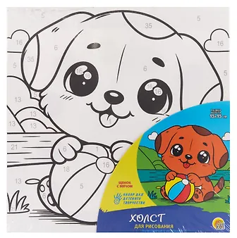 Вашему вниманию предлагается Набор для детского творчества. Холст для рисования по номерам с красками "Щенок с мячом"