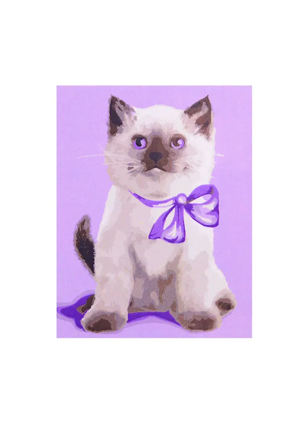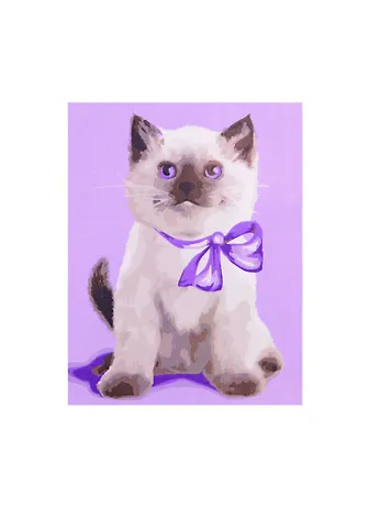Холст с красками 17х22см по номерам (в коробке) (14цв.) Сиамский котёнок с бантом (Арт. ХК-8111)