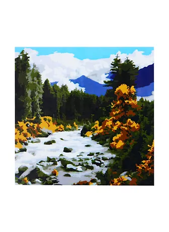 Холст с красками 20х20см по номерам (в коробке), (14цв) Горная река в осеннем лесу (Арт. ХК-4070)