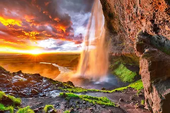 Холст с красками 30х40см. по номерам (19 цв.) Водопад на закате (Арт. Х-9058)