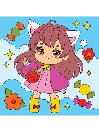 Вашему вниманию предлагается набор для детского творчества "Холст с красками "Девочка с ушками". В состав набора входит холст 15х15 см с нанесенным контуром, 7 акриловых красок, кисть. Для детей с 3 лет.