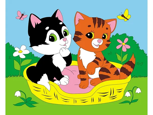 Вашему вниманию предлагается набор для детского творчества "Холст с красками "Котята в корзине". В состав набора входит холст 20х25 см с нанесенным контуром, 7 акриловых красок, кисть. Для детей с 3 лет.