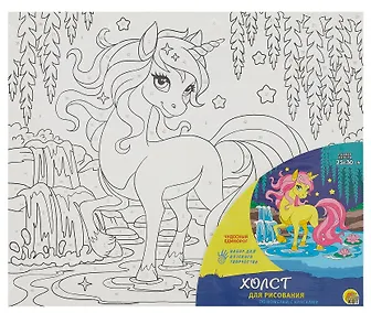 Вашему вниманию предлагается набор для детского творчества "Холст с красками по номерам "Чудесный единорог". В состав набора входит холст 25х30 см с нанесенным контуром, 7 акриловых красок, кисть. Для детей с 3 лет.