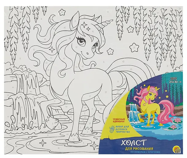 Холст с красками по номерам. Чудесный единорог, 25х30 см