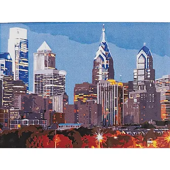 Холст с красками по номерам "Ночные небоскребы у воды", 22 х 30 см