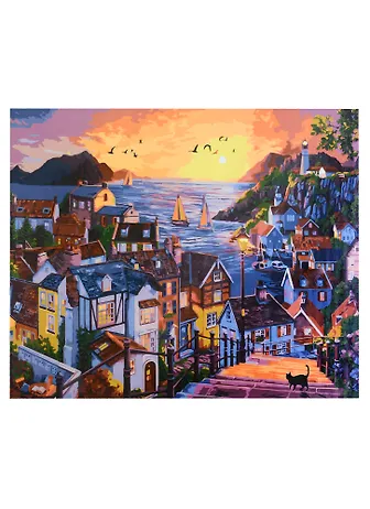 Холст с красками "Вид на тихий приморский город", 40х50