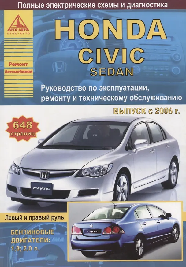 Honda Civic 4D седан Выпуск 2006-2011 с бензиновыми двигателями 1,8: 2,0 л. Эксплуатация. Ремонт. ТО