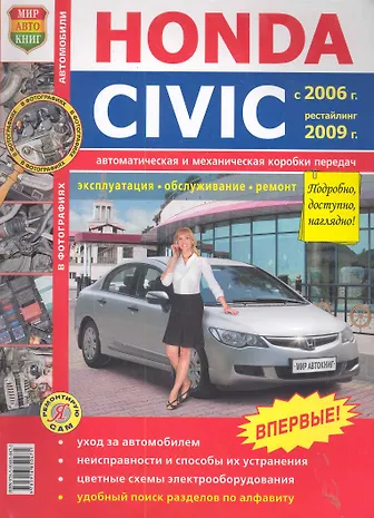 В книге изложено описание работ по эксплуатации, техническому обслуживанию и ремонту автомобилей Honda Civic выпуска с 2006 года и рестайлинговых моделей 2009 года с двигателями 1,8 на базе готовых запасных частей в условиях гаражной мастерской. Приведены правила эксплуатации, основы тюнинга, советы по подбору запасных частей, применению аксессуаров, а также рекомендации по перевозке животных в салоне. Все рабочие операции сопровождаются фотографиями и подробными комментариями, что позволяет сэкономить время, силы и средства, а также свести к минимуму риск повреждения техники.