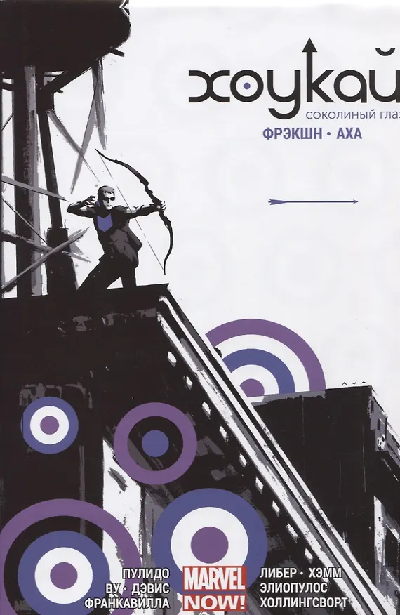 Клинт Бартон, бывалый профи. Кейт Бишоп, талантливый новичок. Два Хоукая зависают вместе, обмениваются стрелами, прикрывают тыл друг друга. Но не так, как вы подумали. Просто два лучных друга, никакой романтики. Никаких натянутых улыбок, господа. Лишь натянутая тетива. Клинту хватает проблем с бывшей девушкой, женой, текущей "подружкой" и рыжей дамочкой с машиной его мечты. Не говоря о недавно купленном им здании, армии упырей в трениках, которые хотят его вернуть, и невероятной собаке, чующей за версту и убийства, и пиццу. А ещё тут Мадам Маска, клоун-убийца и нищеброд-брательник Клинта, Барни. С таким набором битва Мстителей против Таноса покажется невинным пикником. Чаша терпения Кейт пер