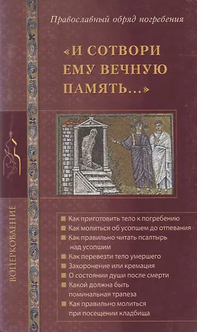 Из этой полезной брошюры вы узнаете: как приготовить тело к погребению, как молиться об усопшем до отпевания, как правильно читать псалтирь над усопшим, как перевезти его тело, какой должна быть поминальная трапеза и т.д.