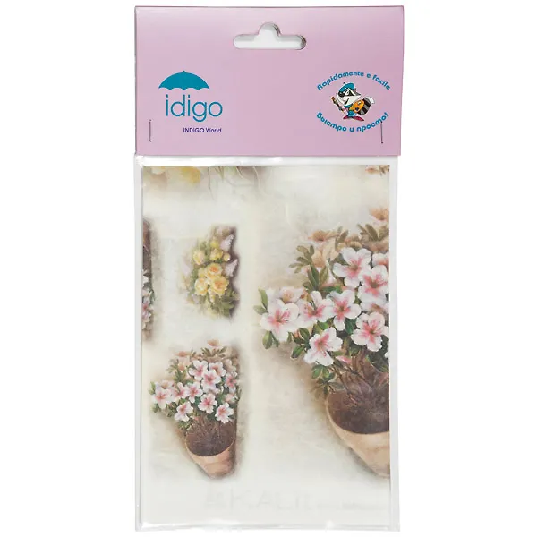 Декупажные карты IDIGO на рисовой бумаге прекрасно подходят для техники декупаж. Используя различные лаки-клеи для декупажа IDIGO, быстро и просто создавать удивительные образы на изделиях из керамики, стекла, фарфора, ткани, дерева, картона, металла, пластмассы и т.д. Выбрав понравившийся мотив декупажной карты, просто создать оригинальные шкатулки, рамки, подставки, вазы, бокалы, тарелки и многое другое. Рисунки на рисовой бумаге хорошо ложатся, как на ровные, так и на рельефные и объемные поверхности и ткань. Большой выбор различных мотивов декупажных карт IDIGO поможет оригинально украсить любое изделие, а различные материалы для декорирования IDIGO позволят завершить образ поделки. Кажд