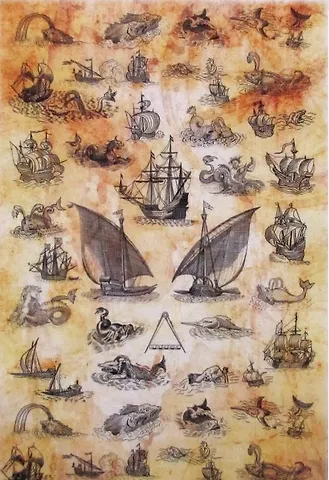 IDIGO декупажная карта 32*45 парусники и морск чудовища d899