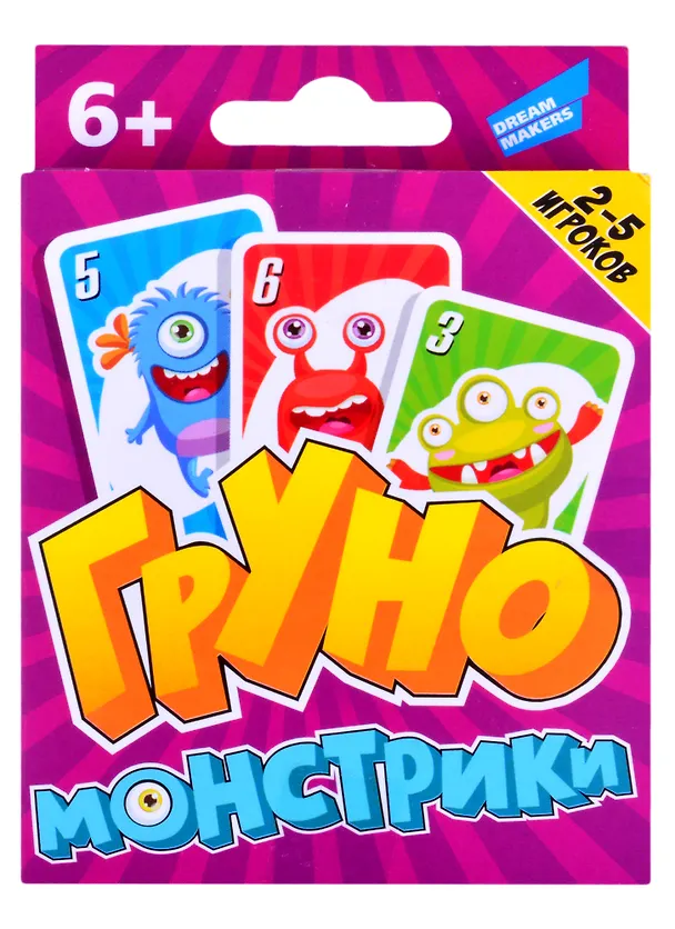 "Груно" – легко играть, невозможно оторваться! Невероятно весёлая игра на реакцию, внимательность и стратегию! Цель игры – первым избавиться от всех своих карт. Простые правила, яркие образы монстриков и динамичный игровой процесс делают эту игру незаменимой для любой вечеринки или для проведения времени с семьёй. Игра развивает моторику, реакцию, ассоциативные навыки и дарит множество позитивных эмоций. Комплектация: Игровые карточки: 35 шт.; Правила игры: 1 шт.