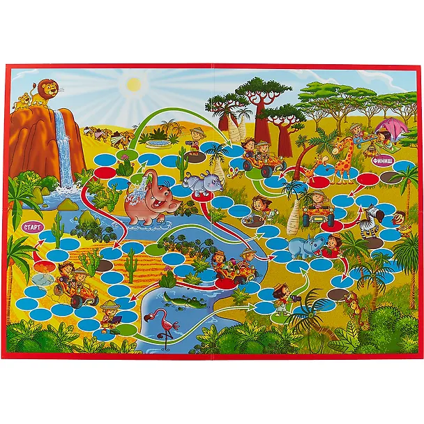 Игра-ходилка. Комплектность:1. Игровое поле2. Игральные фишки: 4 штук3. Игральный кубик4. Правила игры