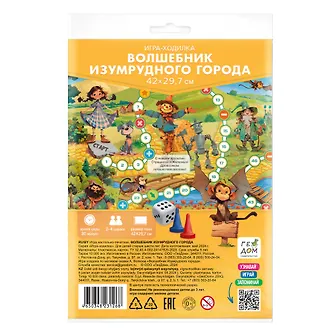 Новая игра-ходилка «Волшебник Изумрудного города» имеет удобный формат и подойдёт для всей семьи. Разложите поле, выберите фишки и отправляйтесь в увлекательное путешествие вместе Элли и её друзьями! Компактное поле легко разложить и удобно брать с собой: игра складывается до формата А5. Игра тренирует счёт, развивает мелкую моторику и внимание.