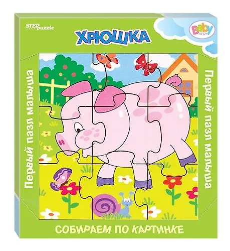 Игра из дерева «Хрюшка» — развивающий деревянный пазл, который был разработан для занятий с детьми от 2 лет. Пазл состоит из 9 деталей.