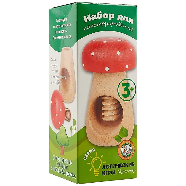 Каждому ребёнку в своём развитии важно регулярно тренировать мелкую моторику, ловкость и логику. В этом ему поможет деревянный набор для конструирования «Мухомор»!