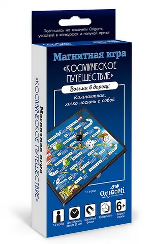 Магнитная игра-ходилка "Космическое путешествие" незаменима в любом путешествии. Благодаря ее компактному размеру, игру очень удобно взять с собой в дорогу, а несложный сюжет и понятные правила понравятся и детям, и взрослым. Совершите захватывающее путешествие в глубины космоса! Бросайте кубик и двигайте свои фишки по игровому полю. Покоряйте звездные дали, проходите интересные испытания. Победит тот игрок, кто первым доберется до финиша! Игра направлена на развитие эмоций и коммуникативных навыков ребенка. Кроме того, такое занятие развивает координацию движений и логическое мышление.