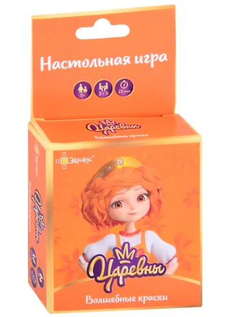 Царевны нашли волшебные краски и нарисовали портреты всех обитателей Дивногорья! Но, чтобы правильно развесить получившиеся картины по стенам и украсить школу, вам потребуется вся ваша внимательность! Царевны. Волшебные краски — это быстрая и весёлая карточная игра с двумя вариантами правил: КАВЕРЗЫ БАБЫ ЯГИ и КТО БЫСТРЕ. Как играть? В варианте игры КАВЕРЗЫ БАБЫ ЯГИ вам нужно будет раньше других игроков заметить персонажа, повторяющегося на двух карточках, и накрыть эти карточки ладошкой. Чем больше карточек успеете накрыть — тем ближе будете к победе. Но берегитесь Бабы Яги! В варианте игры КТО БЫСТРЕЕ каждый игрок получает карточку с одним из персонажей, а затем все игроки одновременно ста