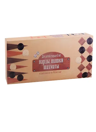 Игра настольная Рыжий кот Игра 3 в 1 дерево (нарды, шашки, шахматы) (29х14.5х3 см) шах.фиг.- пластик, шашки-дер AN02590