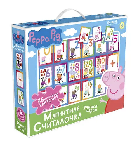 Ваш малыш подрос и пришла пора научиться считать? С Пеппой это просто! Она точно знает, что учиться - весело и легко. 33 магнитика с цифрами и 3 - с математическими знаками. Малышу понравится считать!