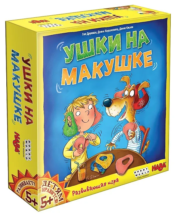 «Ушки на макушке» — весёлая игра на развитие памяти и внимательности. Надевайте на себя разноцветные ушки, и вперёд! Что нарисовано на вашем левом ушке? А какого цвета правое? Хорошенько запоминайте такие мелочи, и победа уже в ваших лапках! Не забывайте трясти ушками и вовремя говорить «гав!»: так ваш семейный вечер пройдёт ещё веселее.