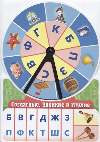 Обучающая игра "Согласные. Звонкие и глухие" научит ребенка различать парные глухие и звонкие согласные звуки. Вращая внутренний круг и пластиковый элемент, малыш научится соотносить картинку с нужной буквой.