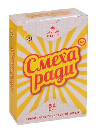 Забавная игра в жанре "вопрос-ответ" поможет любой компании быстро найти общий язык и отлично провести время! В коробке вы найдете 54 карточки двух типов: с вопросами и ответами. Перед началом тщательно перемешайте каждую колоду. Первый игрок вытягивает карточку с вопросом и зачитывает вслух, после чего он выбирает любого участника, который должен достать карточку с ответом и прочитать его всей компании. Произнеся ответ, второй игрок тянет карточку с вопросом и выбирает следующего участника. Игра продолжается до тех пор, пока все примут в ней участие. Возраст 12+.