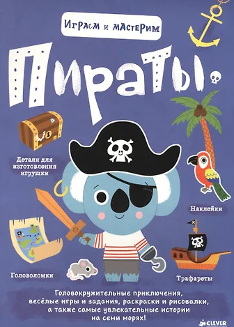 Веселая книжка-мастерилка с наклейками и веселыми заданиями. Вас ждет увлекательное путешествие в команде отважных пиратов: прокладывайте безопасный маршрут к сокровищам, учитесь ловить рыбу и варить уху, знакомьтесь с подводным миром, составляйте пиратскую карту и сражайтесь с морским чудовищем.