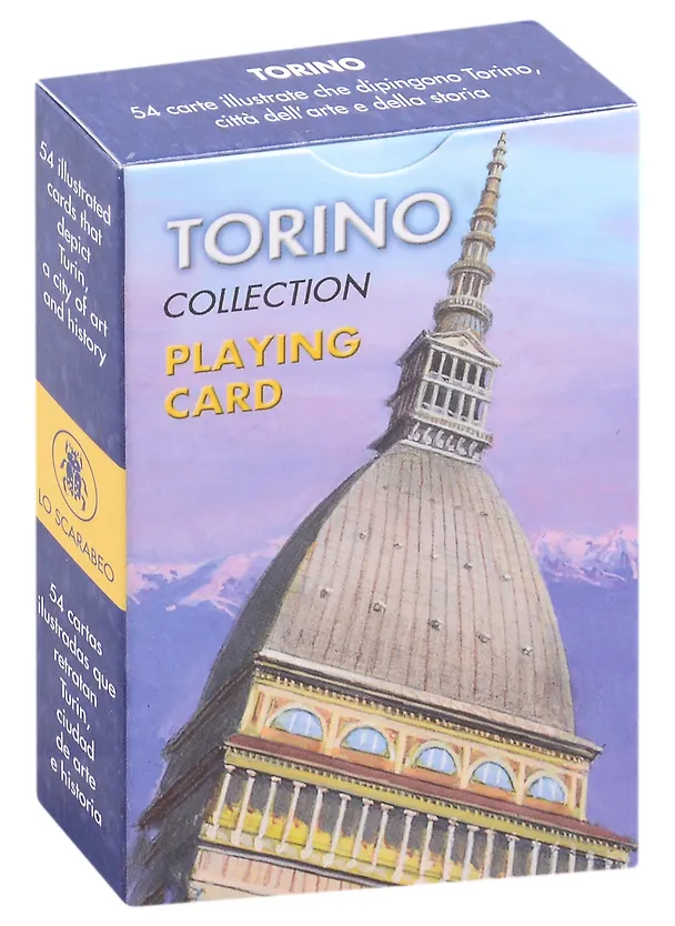 54 иллюстрированных игральных карты, на которых изображен Турин, город искусства и истории.