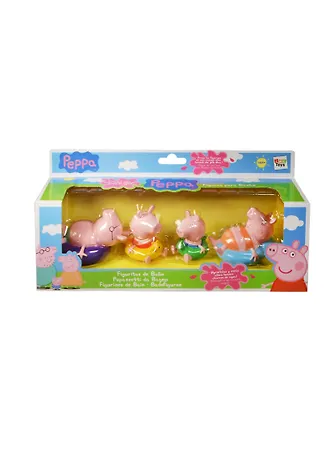 Чтобы купание было интереснее, можно поиграть в ванне с любимыми героями мультфильма «Свинка Пеппа», весело побрызгаться водой, обыграть сценки из мультфильма или придумать свои собственные сюжеты приключений. В игровом наборе для ванной «Peppa Pig» 4 фигурки из пластизоля в купальных костюмах, которые могут набирать воду и брызгаться ею.
