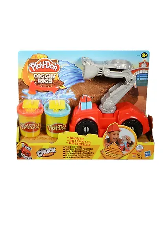 Комплектация: пожарная машинка, аксессуары для игры, 2 баночки пластилина Play-Doh, инструкция.