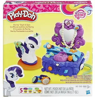 Создай потрясающий пони образ для Рарити! Ее туалетный столик действует по принципу экструдера, позволяя создавать драгоценные браслеты, кольца и колье. Добавь страз и веселых безделушек с помощью встроенных полуформ. Когда Рарити будет готова к выходу в свет, покрути ее, чтобы оценить новый образ.