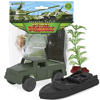 ВОЕННАЯ СЕРИЯ "НА СТРАЖЕ РОДИНЫ" позволит побывать в мире приключений и риска. Погружаясь в игрушечный мир солдатиков можно оказаться в эпицентре военных действий, примерить роль генерала или простого солдата, защитить Родину от вражеского нападения, отразить атаки и захватить в плен противников, стать настоящим героем. Преимущества: живое общение, интерес к истории, тактическое мышление, коммуникативные навыки. Комплектация: машина - 1шт, лодка - 1 шт, дерево - 2 шт