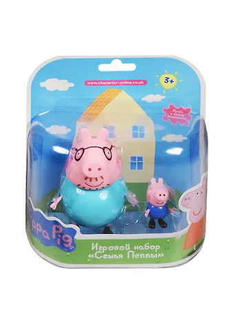 В игровом наборе «Семья Пеппы»: 2 фигурки персонажей из мультфильма «Свинка Пеппа», которые могут сидеть, стоять, двигать ручками и ножками. В ассортименте 2 набора: 1) мама Свинка (9 см) и Пеппа (5 см); 2) папа Свин (11 см) и Джордж (4 см). Игрушки изготовлены из высококачественного безопасного пластика. Товар сертифицирован и предназначен для детей от 3 лет. Упаковка – красочный блистер.