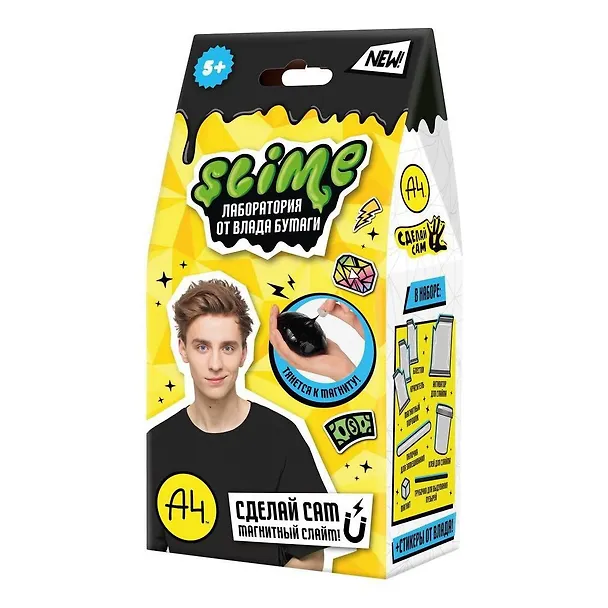 Slime Лаборатория от топового блогера Влада А4 – создай свой собственный слайм со своим супер-свойством! Светящийся в темноте, Хрустящий, Глянцевый как масло, Магнитный! В каждом наборе стикерпак от Влада А4!