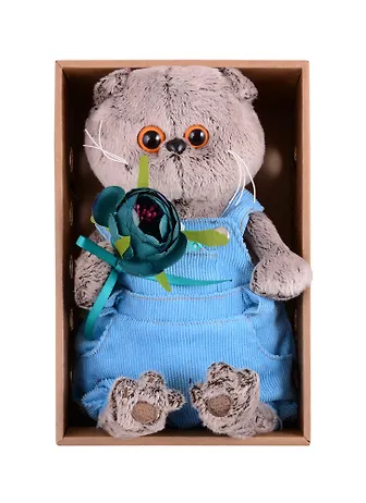 Мягкая игрушка Басик в голубом комбинезоне с розочкой (19 см) (Ks19-142)